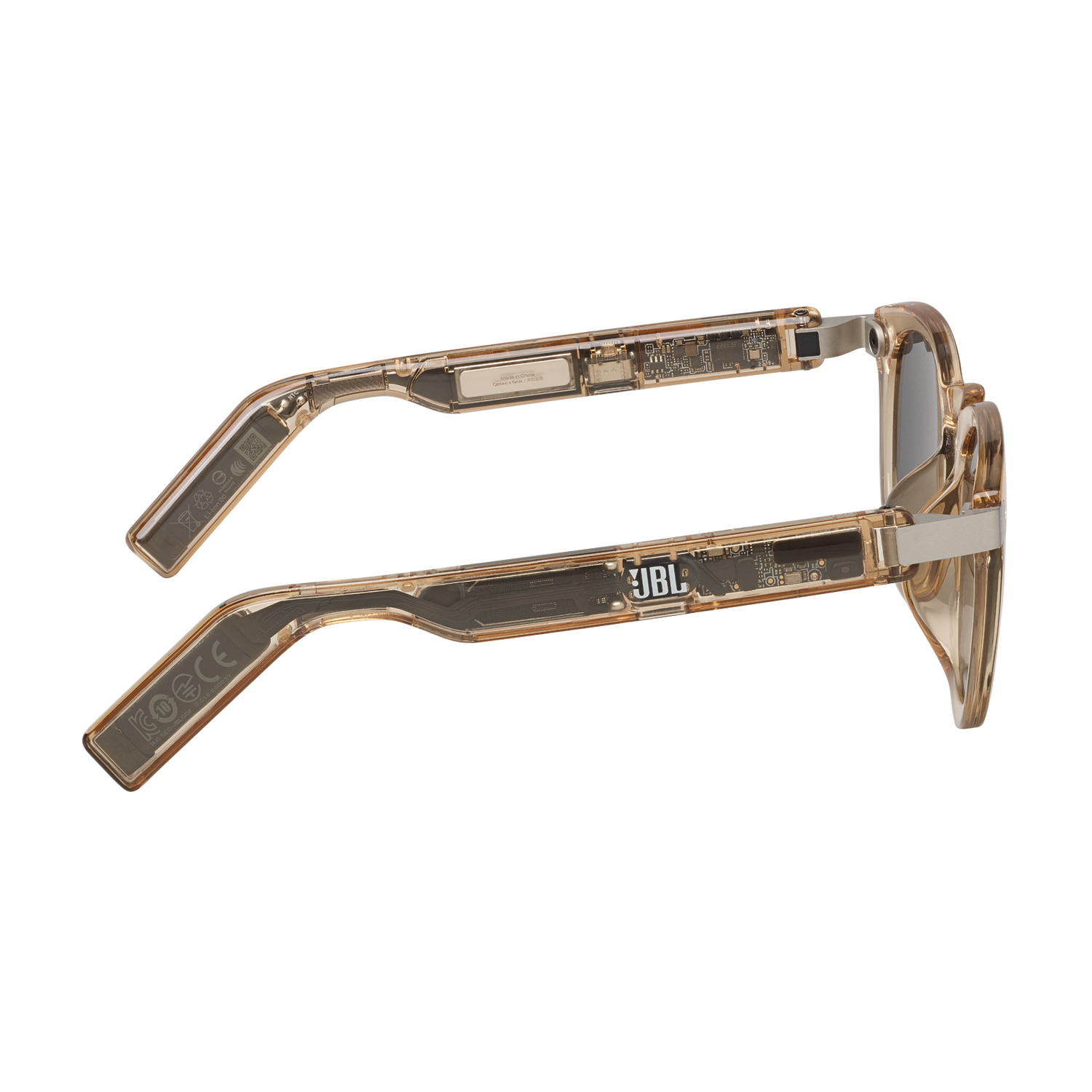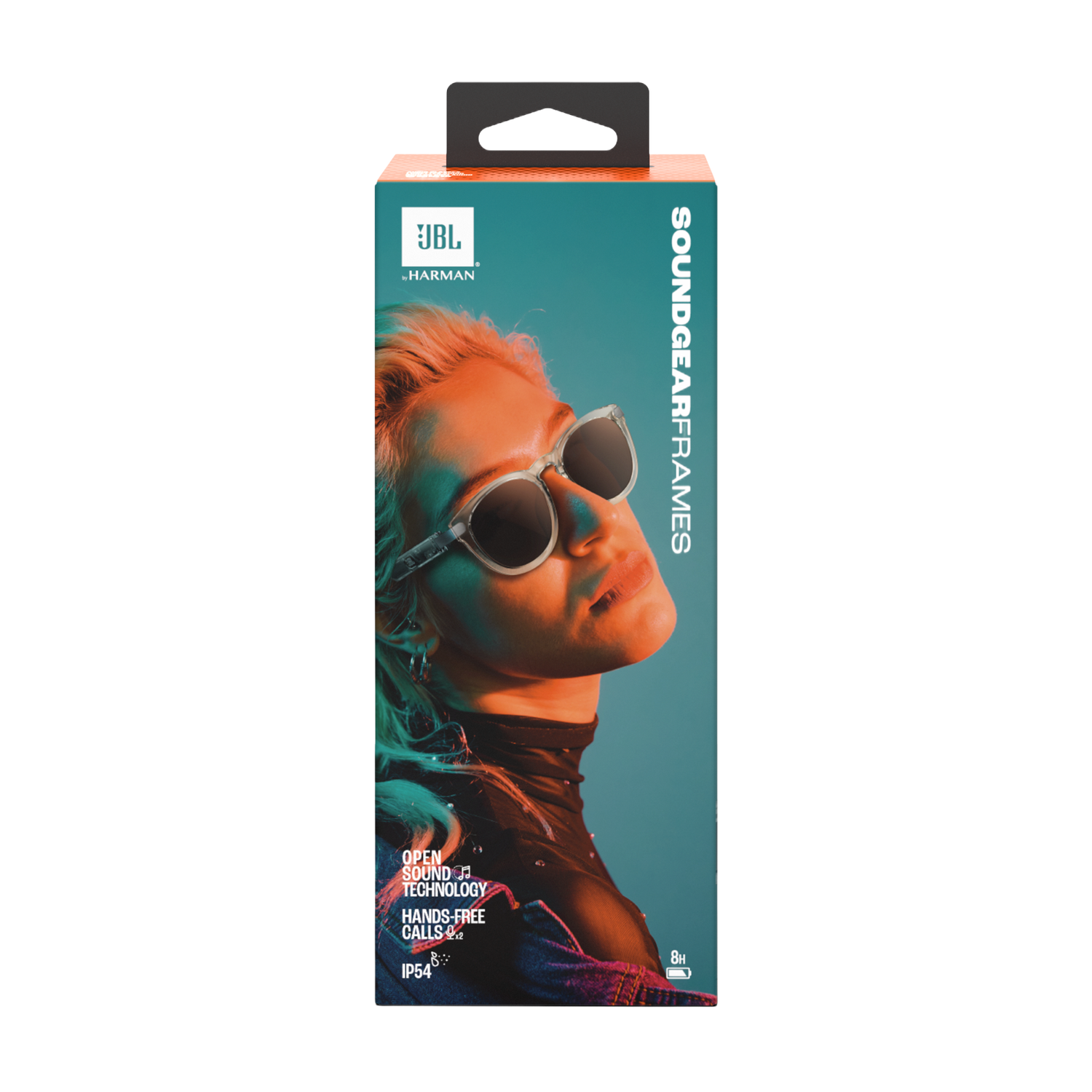 JBL Soundgear Frames are the perfect fusion of sound and fashion. Made with the latest thermoplastic materials, the slim, flexible, lightweight frames are comfortable enough to wear all day, and come in three unique translucent colors and two stylish designs. (And yes, you can get prescription lenses installed in them by your optician.) Open the temples to turn the speakers on and close them to turn them off. When you're wearing them, just tap the JBL logo on either temple to adjust the volume, answer a call, or skip a song. JBL's unique ultra-thin 25mm*9mm high amplitude speakers—powered by JBL OpenSound technology—are mounted inside the slim temples to enhance aesthetics and comfort. They deliver an immersive and engaging audio experience while still letting you hear the sounds around you. Connect the Soundgear Frames to the JBL Headphones app and customize the sound to your own preferences, or choose from 6 preset EQ curves. The JBL Soundgear Frames are where style meets sound.
