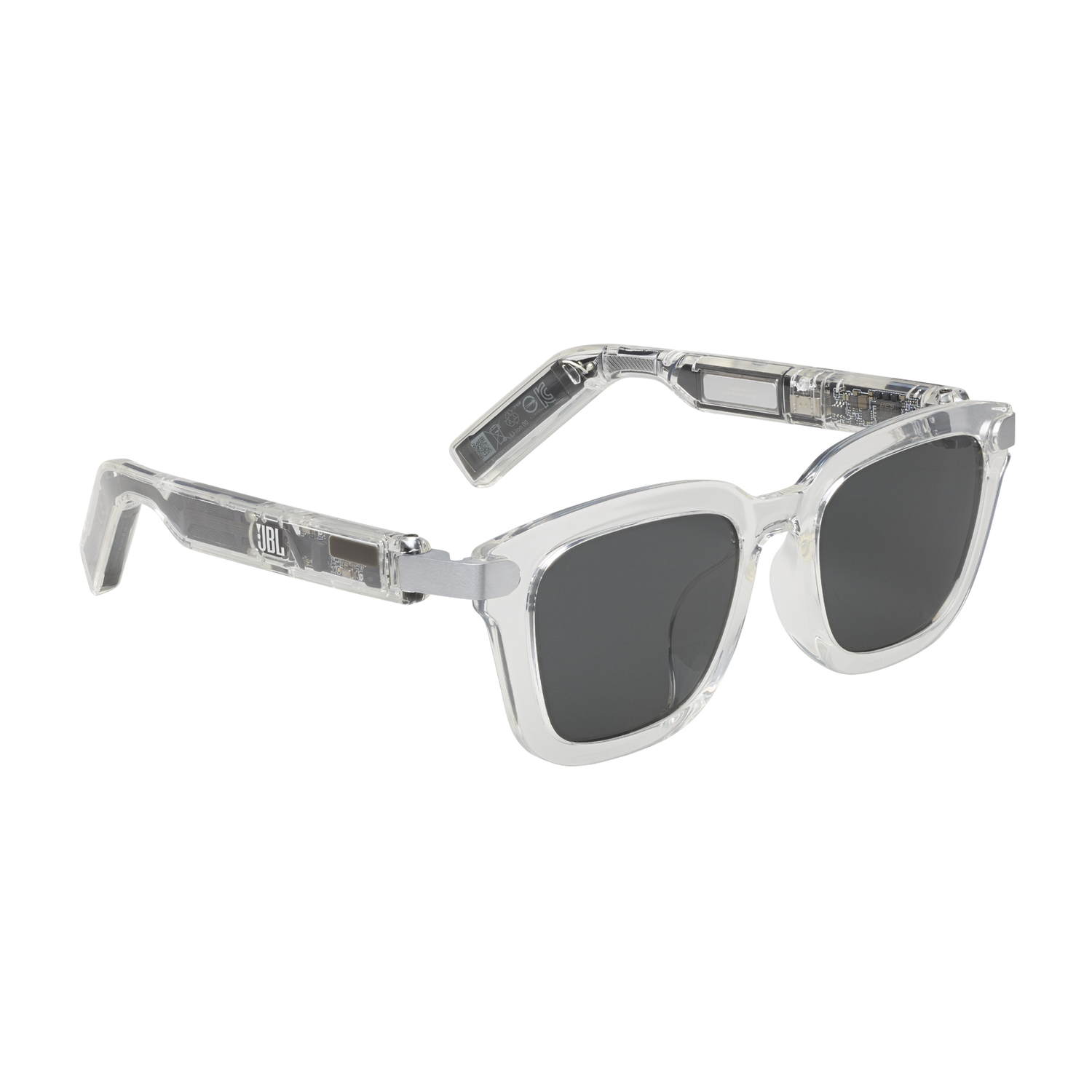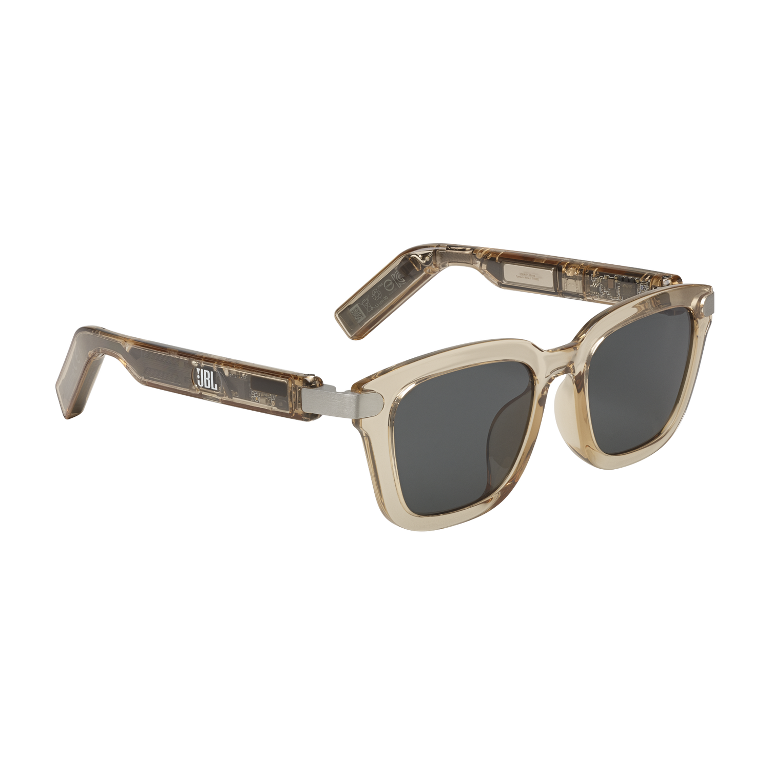 JBL Soundgear Frames are the perfect fusion of sound and fashion. Made with the latest thermoplastic materials, the slim, flexible, lightweight frames are comfortable enough to wear all day, and come in an unique translucent color and stylish design. (And yes, you can get prescription lenses installed in them by your optician.) Open the temples to turn the speakers on and close them to turn them off. When you're wearing them, just tap the JBL logo on either temple to adjust the volume, answer a call, or skip a song. JBL's unique ultra-thin 25mm*9mm high amplitude speakers—powered by JBL OpenSound technology—are mounted inside the slim temples to enhance aesthetics and comfort. They deliver an immersive and engaging audio experience while still letting you hear the sounds around you. Connect the Soundgear Frames to the JBL Headphones app and customize the sound to your own preferences, or choose from 6 preset EQ curves. The JBL Soundgear Frames are where style meets sound.